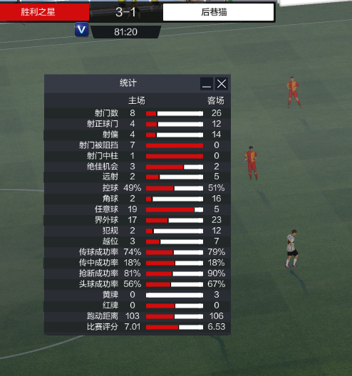 50%的射正率满足吧,有一场巡回赛我43脚射门,3次射正,最终比分3:0