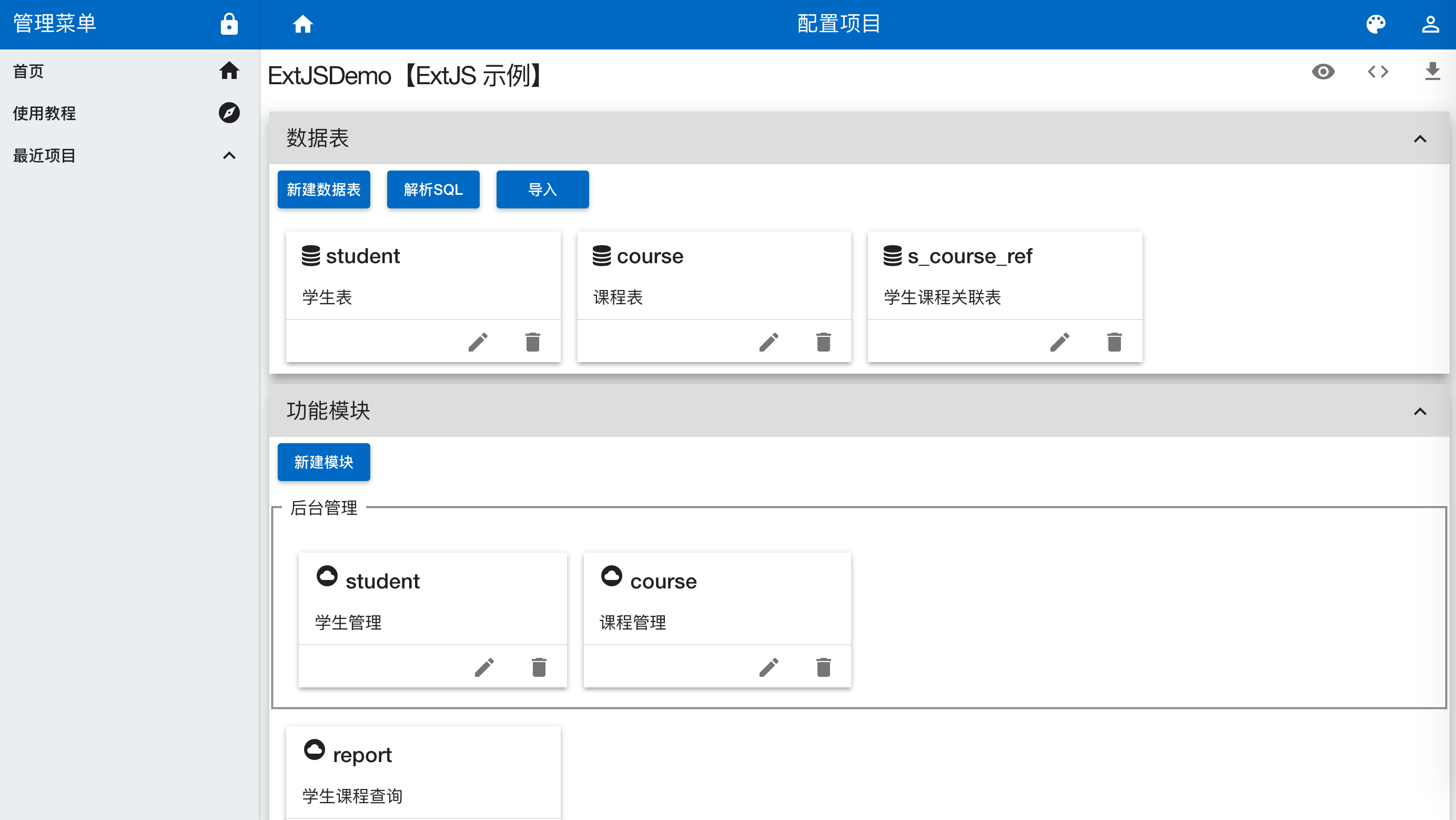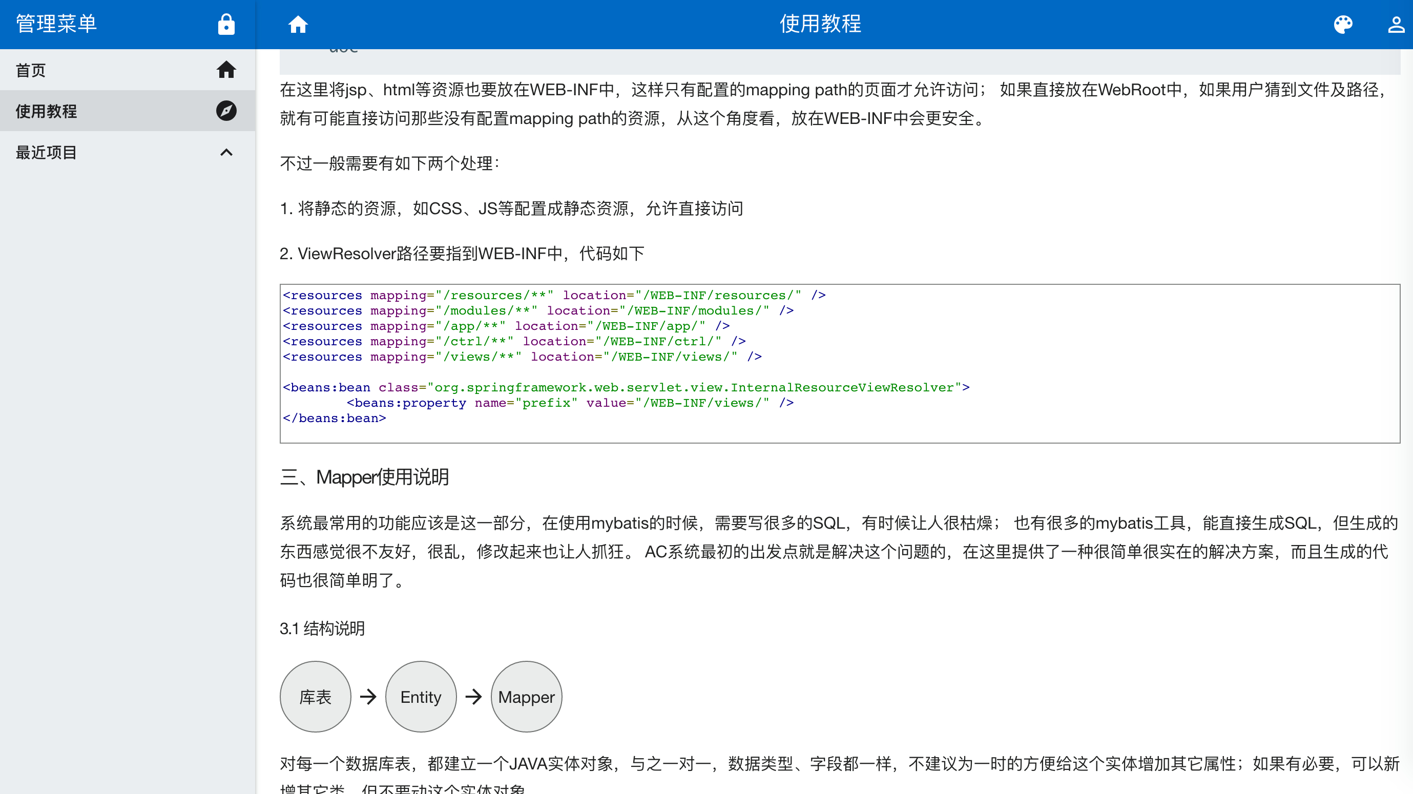 AC (Auto Code)生成Spring MVC、Mybatis后台框架,生成bootstrap、angular js、ExtJS等主流前端框架页面。完美的在线预览功能,能实时预览功能模块。提供代码在线查看,可直接复制。代码包下载,基于maven,提供脚本一键安装。本网站基于Google material design 设计,响应式设计,手机、平板、PC等所有设备均可访问。