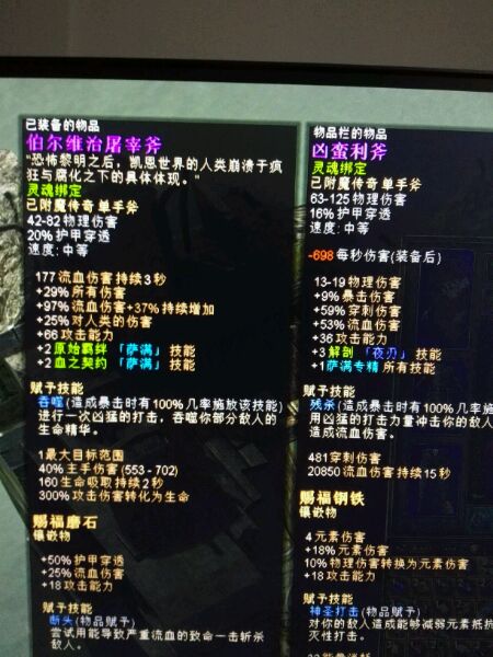 这两个武器哪个适合点。屠宰斧加流血多,凶蛮加1萨满技能