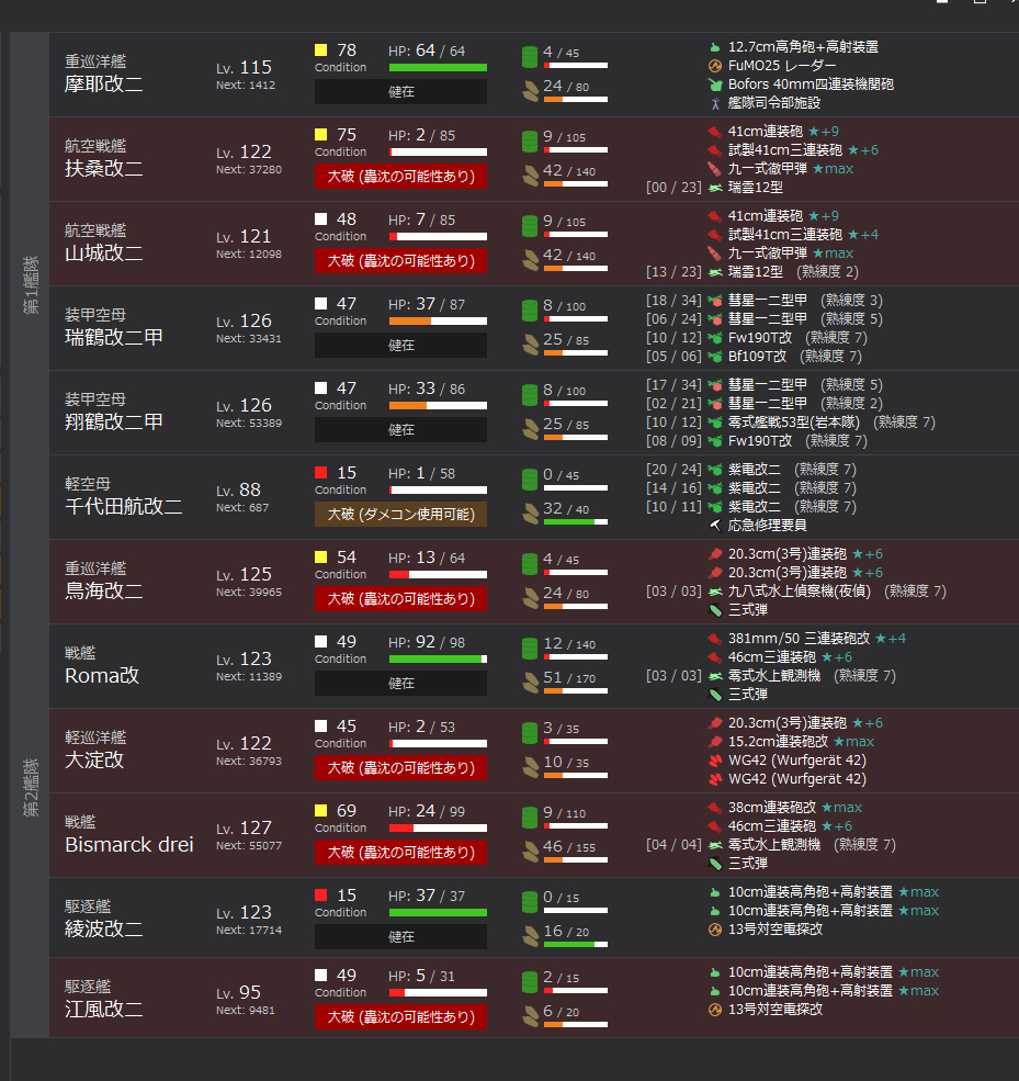機動艦隊配置,走的是上路手動退避流,犧牲掉2艘船,換來更強的2隊和穩定進BOSS