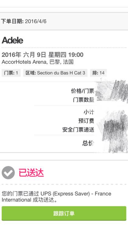 [Adele]{{{转让}}}三张6月9日晚上法国巴黎,阿黛尔演唱会门票。现票在手,闲鱼交易,立刻寄出,有意者密我。