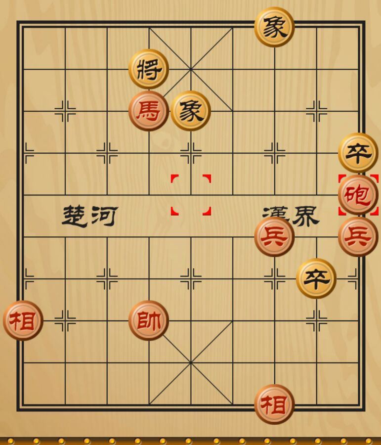 如上图 炮一平五,此时黑不能再走象7进9了,因为红有帅六平五用马换象的好棋,黑剩下单象难以阻挡红三路兵过河,未过河的卒子也在劫难逃。形成炮双兵双相对卒双象,黑必败。