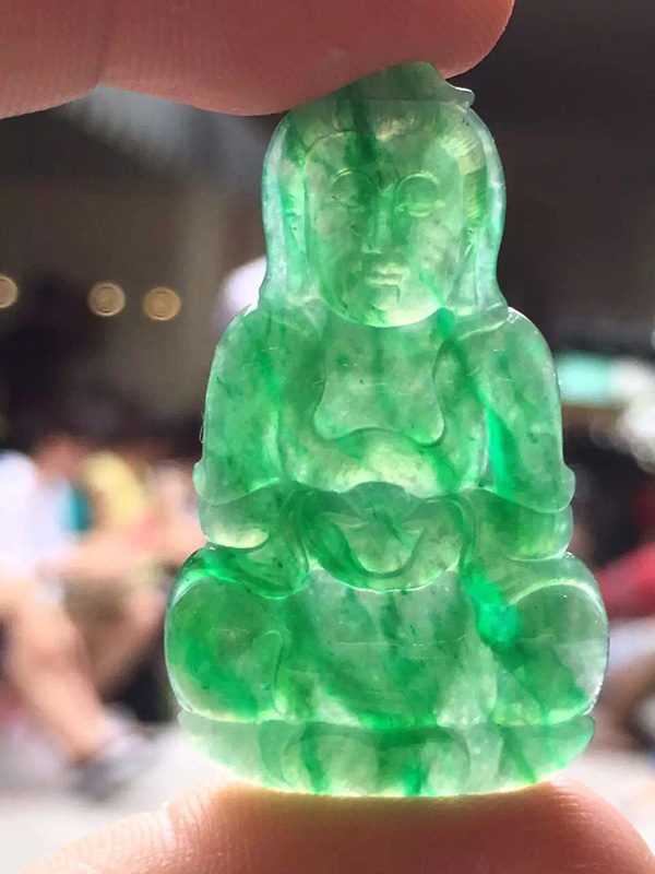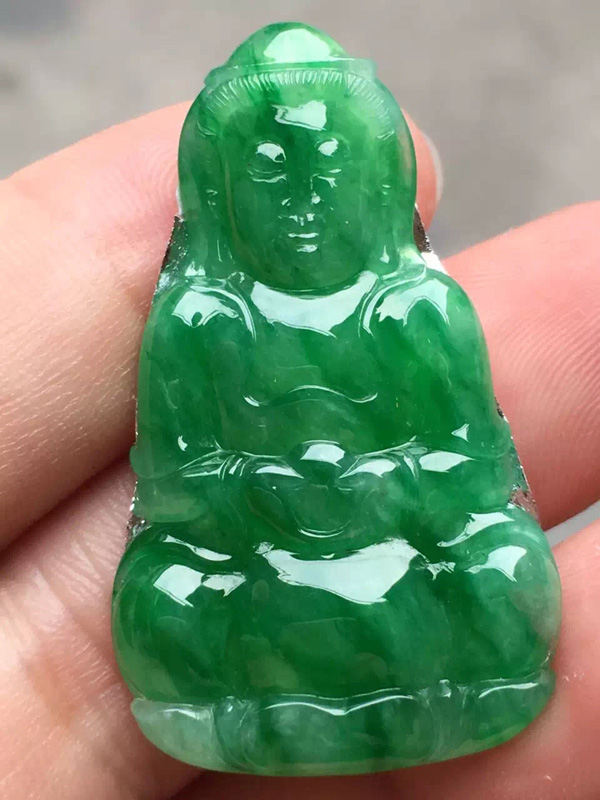 冰绿观音,形体不错,品相好,种水好,色辣,镶嵌赞赞 尺寸38/22.3/3.3 价秒:17500.【050614165】