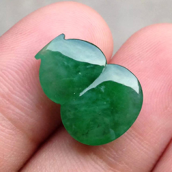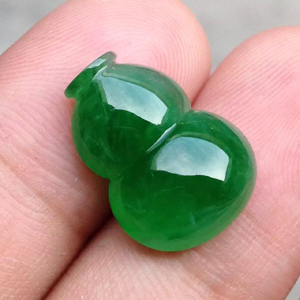 冰种满绿葫芦,满色阳绿,饱满有型,色泽漂亮,镶嵌效果一流,尺寸:17.5*13*6.2,售价8580【05070780】