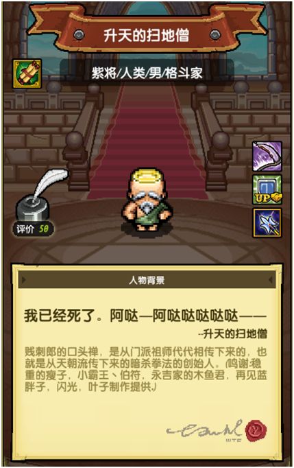 由于伯符一直在游戏里很活跃,最后在TGBUS合作论坛群里当上了管理员(顺便说一句,我加的第一个群也是这个群,经常被伯符禁言),给各种萌新解答游戏中所遇到的问题,当时论坛里人气很足,貌似还没有官方群,大家在一起其乐融融。后来,官方面基活动,伯符也报名参加,活动中,伯符见到了当时很多传说中的人物,例如:天赐、雄霸等人,并且还给游戏提出了许多新的建议,并强烈要求出伯符佣兵,为什么有刘关张、曹操,却没有孙策!官方采纳了他的意见,承诺会出,最终在上周推出了新佣兵孙策,满足了伯符的愿望。(此处应有掌声!等了快一年终于有孙策啦!)面基的最后还获得了制作新佣兵的机会,伯符一直觉得扫地僧作为闪蓝名气不够大,作为金庸武侠里面最牛逼的存在(大家可以去看看),扫地僧一直被冒挖所低估,为了让扫地僧强大起来,伯符和几个小伙伴一起制作了升天的扫地僧,想让带上王者光环的扫地僧牛逼起来,可惜天不遂人愿,在玩家投票中败北给皮卡丘,最终成为了紫卡,不过当时还获得了特殊佣兵时尚侠,也算是给了一点小小的补偿吧。