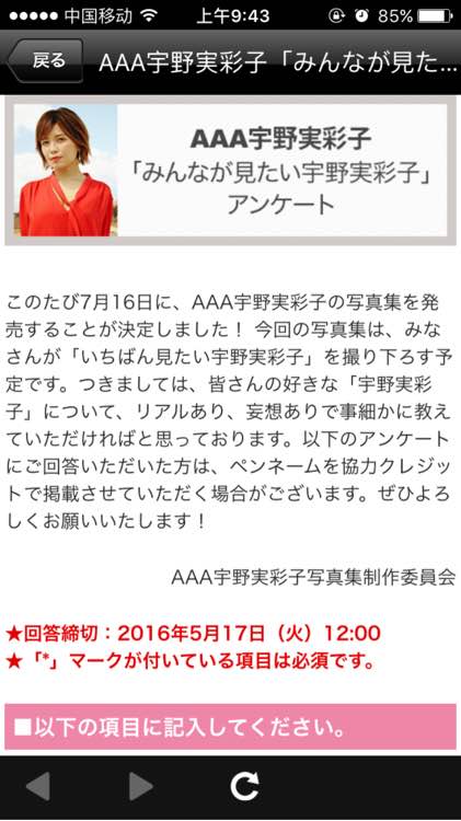 回复 i梦曦 :「みんなが見たい宇野実彩子アンケート」意思就是"'大家想看到的宇野'民意调查",彩妈将出写真集的问卷调查