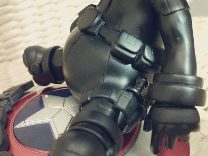 之所以完工后的原型与设定有很大差别,是因为实际制作中越做越复杂,分件已经达到近40个,所以相比设定减掉了钢铁侠和雷神元素、把美队的盾改成了底座。