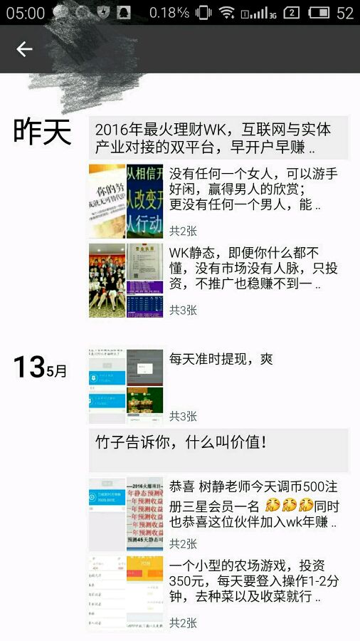 你这个还不可怕 可怕是刘少丹的solomo . 我这边好多亲戚都搞这个,每天都在微信群里各种洗脑.还不定期开各(逼)种(格)议(高)会. ... 我想不明白, 韶关互联网跟一线城市相差不下5年. . 一,没钱. 二,没能力. 三, 没人才. 凭什么去玩?