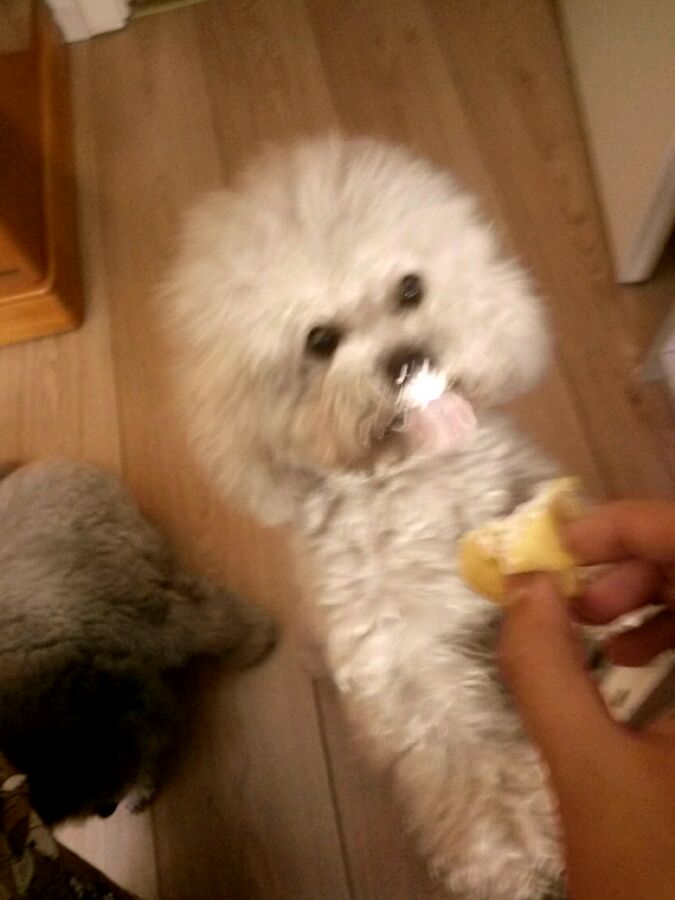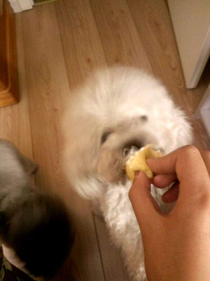 RT,今天写作业时想吃点东西然后去厨房拿了个泡芙想回来吃,结果这货就跑过来跟前坐下了……