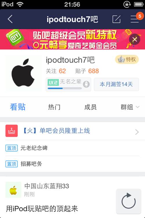 用iPod玩贴吧的顶起来