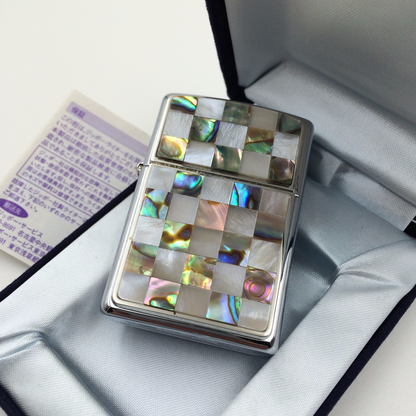【描述】全新原盒说,镀铬镜面&彩贝拼图贴章工艺,简约与繁复的结合,原胆打火好,手感上佳自用好选!