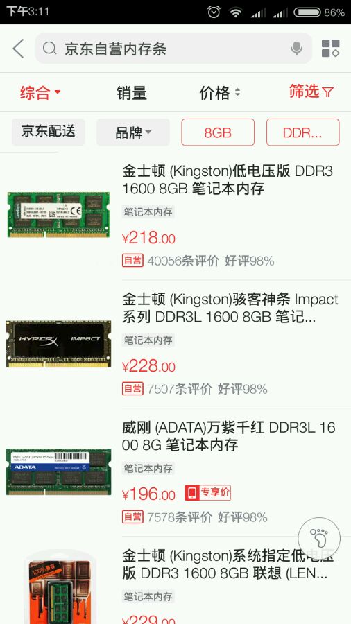 你上京东搜ddr3 笔记本 8g就能搜到很多自营的,搜不到是因为有些低压没写ddr3l