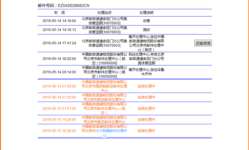 5月13号,在苹果官网下的单,2388,xyk分期,14号显示发货,一开始看到走航空,心想20号差不多该到了吧,结果在北京就耽误了3天,今天查物流,又变成陆运!客服还忽悠我说新疆这里不让走空运,心里是觉得苹果公司店大欺人。