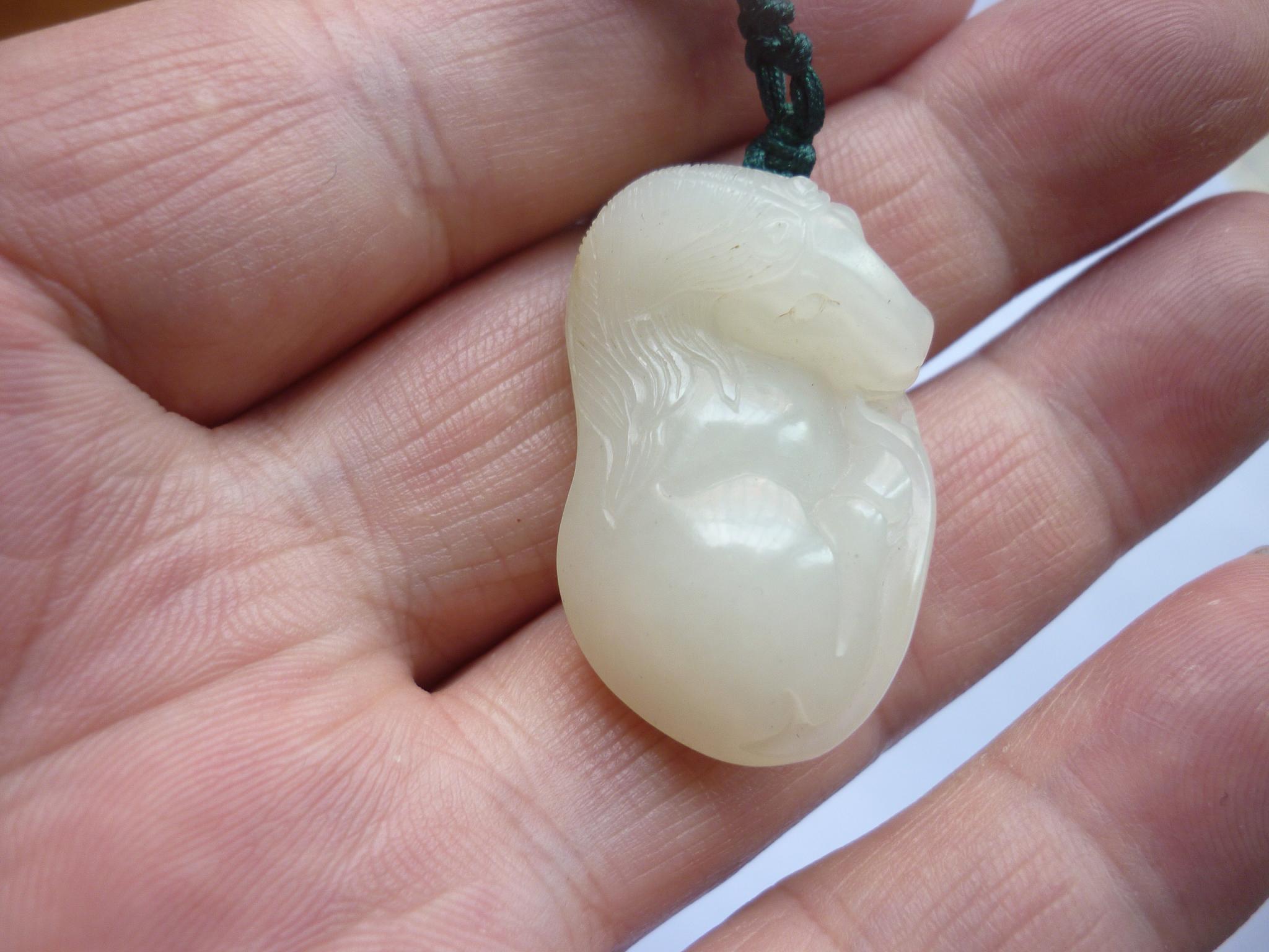 和田羊脂白玉挂件-----马到成功