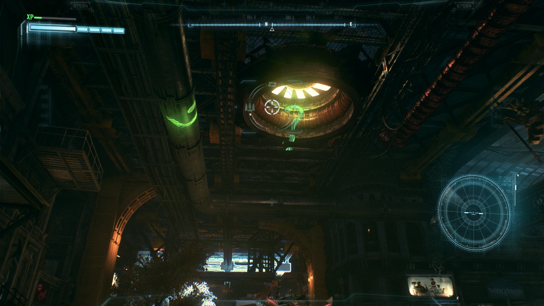 用蝙蝠车保持战斗状态开到井的上面再扫描即可