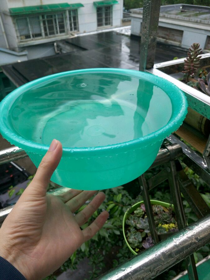 上班前接的雨,下班回来快满出来了,瞬间觉得做得这个带雨棚的花架太合适了!