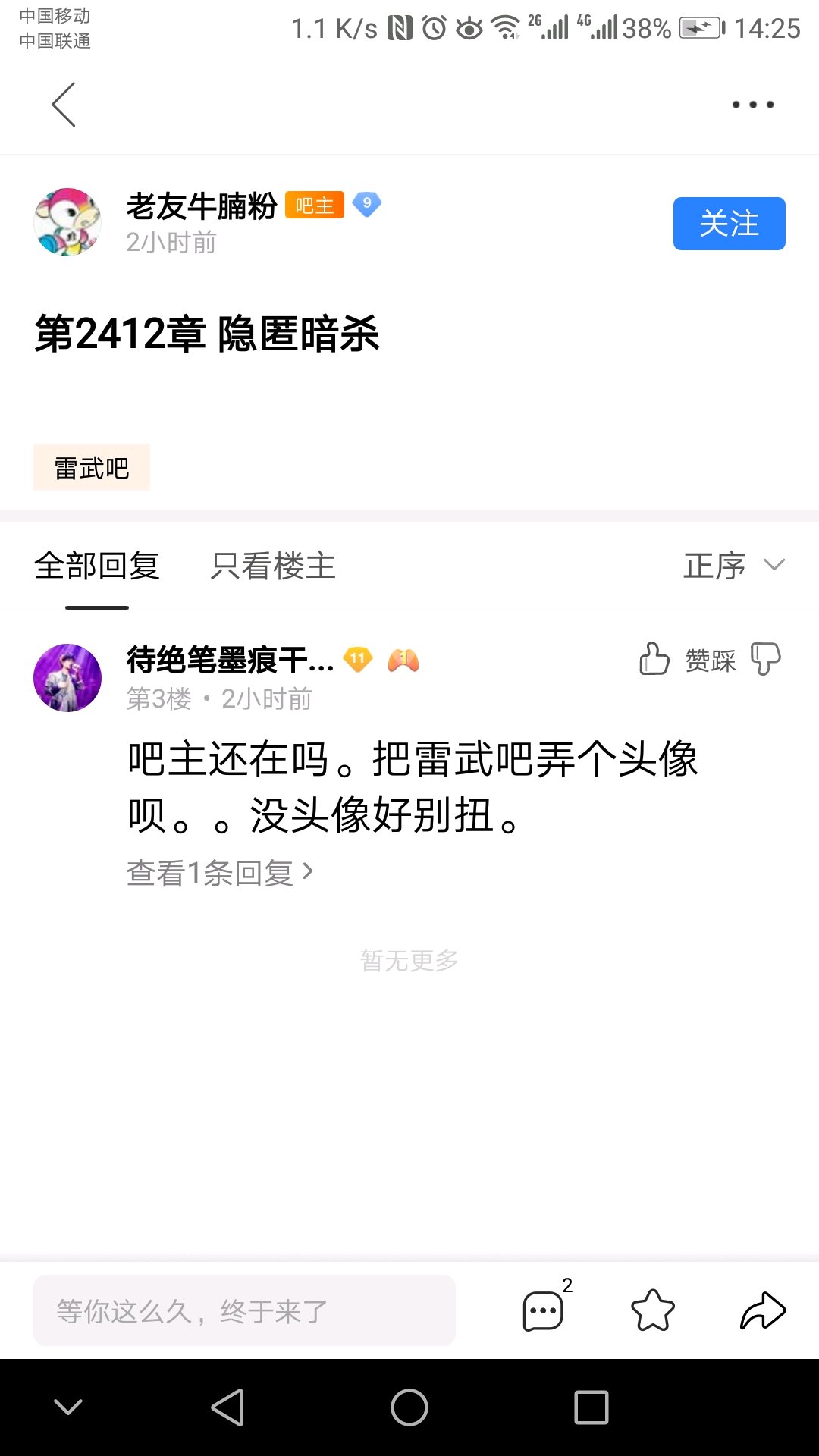 吧主还在吗。把雷武吧弄个头像呗。。没头像好别扭。
