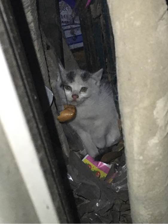 继续顶!本帅拿孕妇奶粉去喂喂!大晚上叫媳妇一起去试试看!喂了不吃也没办法!希望他会出来吃点!纸箱泡沫已准备好希望能顺利!要是出来明天就去宠物店买幼猫食物!狂犬病疫苗钱已准备就绪!各位不管看没看到帖子的吧友请赐予我力量吧!