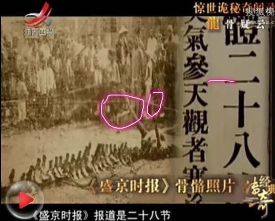 这个解释太牵强了,你说那个什么小孩子的白色物体是什么啊,还有什么女子衣服的边缘,这角度明显不对啊,虽然我自己也觉得图中的龙不大像真龙的骨骼。