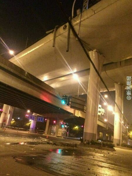 魔都超载车半夜偷上中环撞塌高架