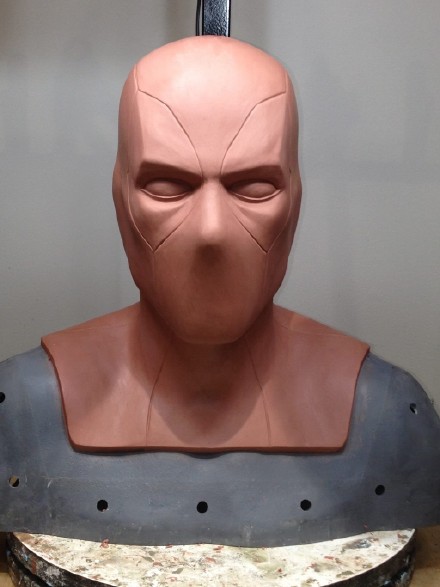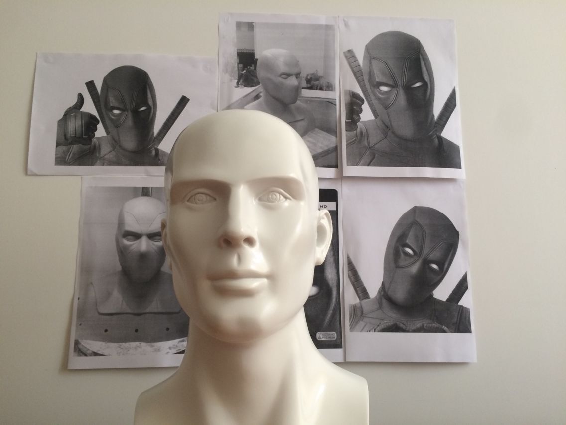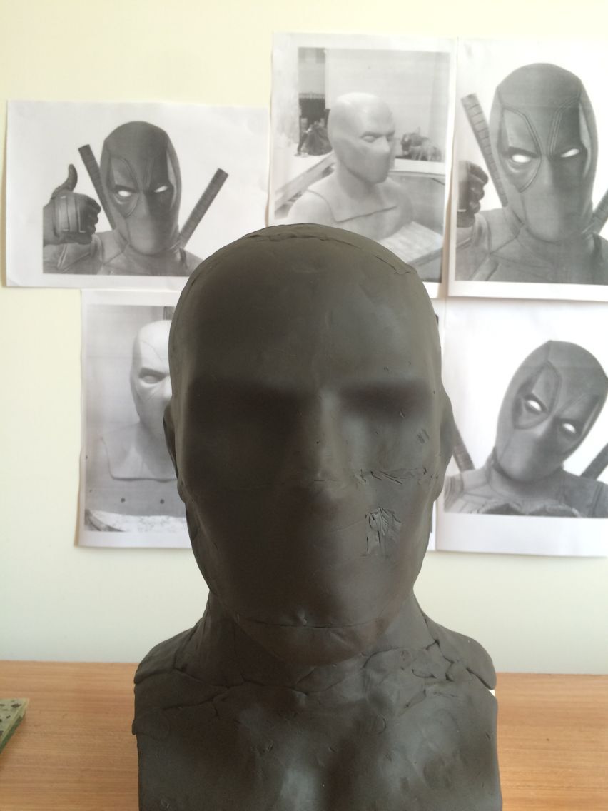 看到贴吧里有兄弟制作死侍头套,一时技痒,也想做一个,也是按照官方的方法制作,弄了一个头像模型,用黑色油泥雕出一个