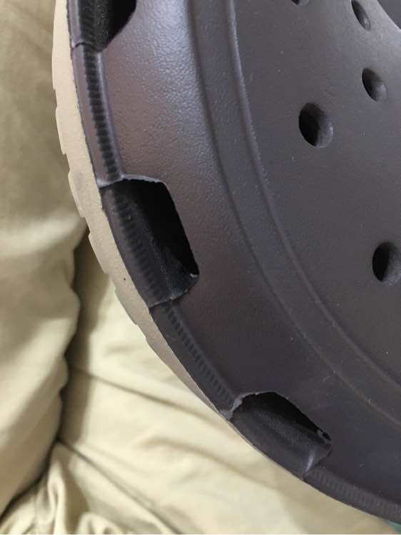 鞋子本身没得问题,品相很一般,但是塑模类的,普遍就很一般 如果你看看看玛丽珍或者世界杯卡骆班你会明白,原来我这个还不是最差的,呵呵 如果实在不能接受,没拆吊牌没穿,可以退换的 crocs就一美国大众牌子,不是啥高端货,其卖点只有舒适和环保;至于其他啥子制作精良,品相完好,不要期望太高