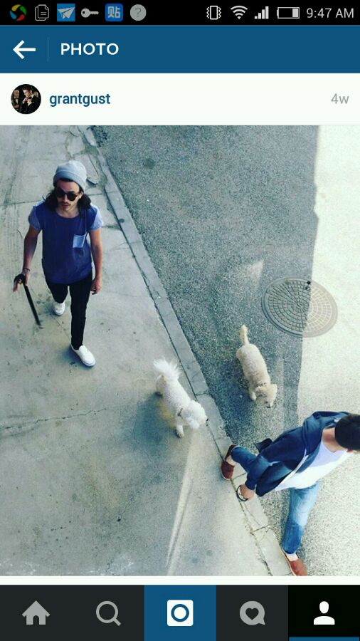 gg养了两只狗哈哈,大概是。。泰迪??白色的,一只叫Nora,一只叫Jett,gg还特地给它们创了一个类似于微博里话题的东西呢,图为哥哥和两只狗∪・ω・∪