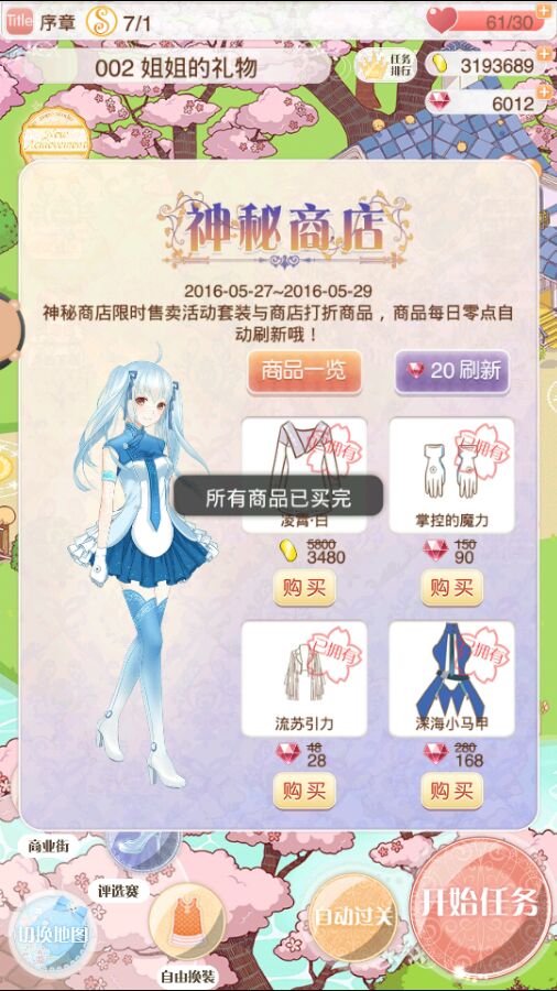 就差鞋子,刷新了两下就出了,算是约完