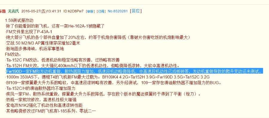05-28◆〖讨论〗关于1.59版本190d气动以及发动机变动的问题