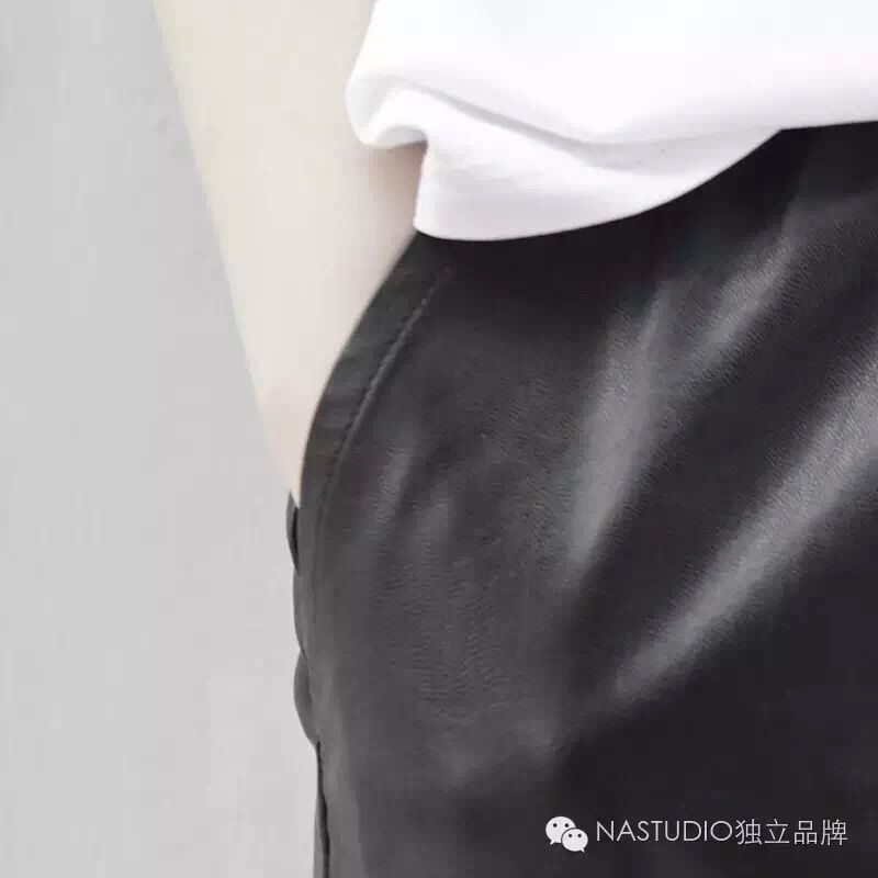 【N/A】“N/A”牌推荐:运动风仿制皮直筒短裤