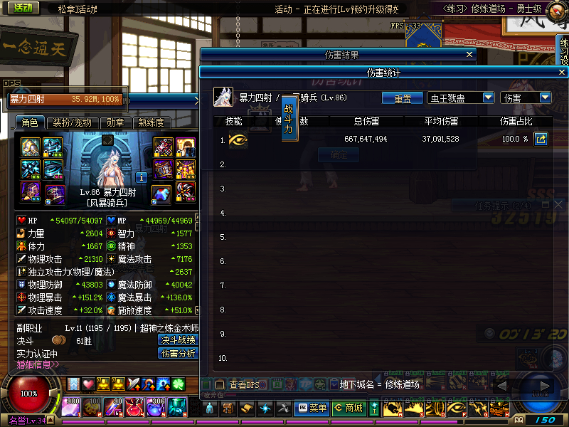 没爆伤戒指,带的安图左,吃商城药19秒KO虫子