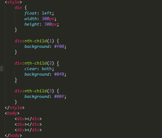 绿色的clear:both不是左右两边都不应该有浮动块吗?那蓝色float到绿色右边,岂不是跟绿色的clear:both冲突了?我也不理解