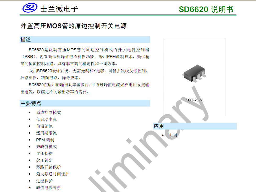 SD6620 市场新出无需光耦和Y电容的士兰微新物料 原装正品