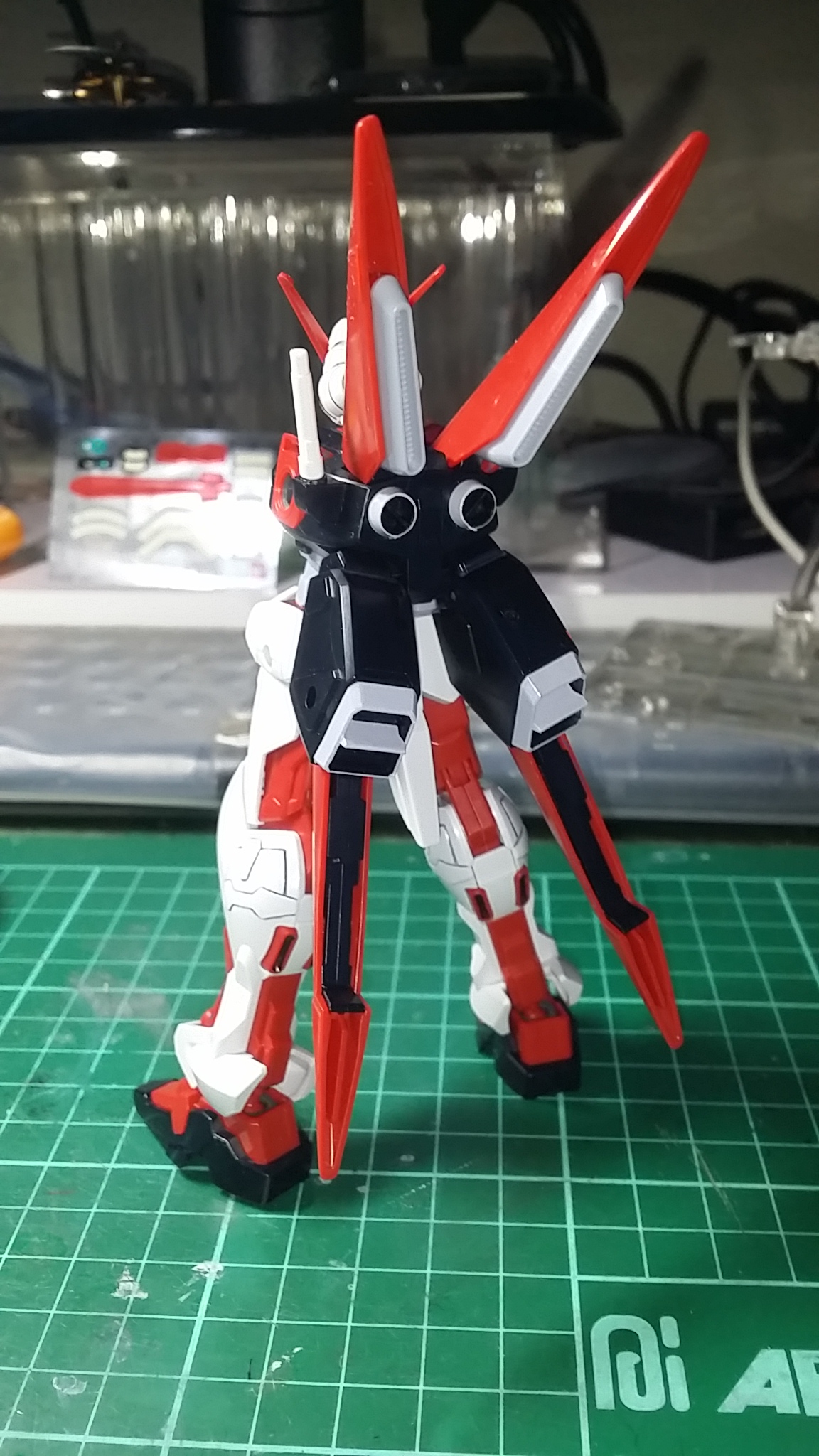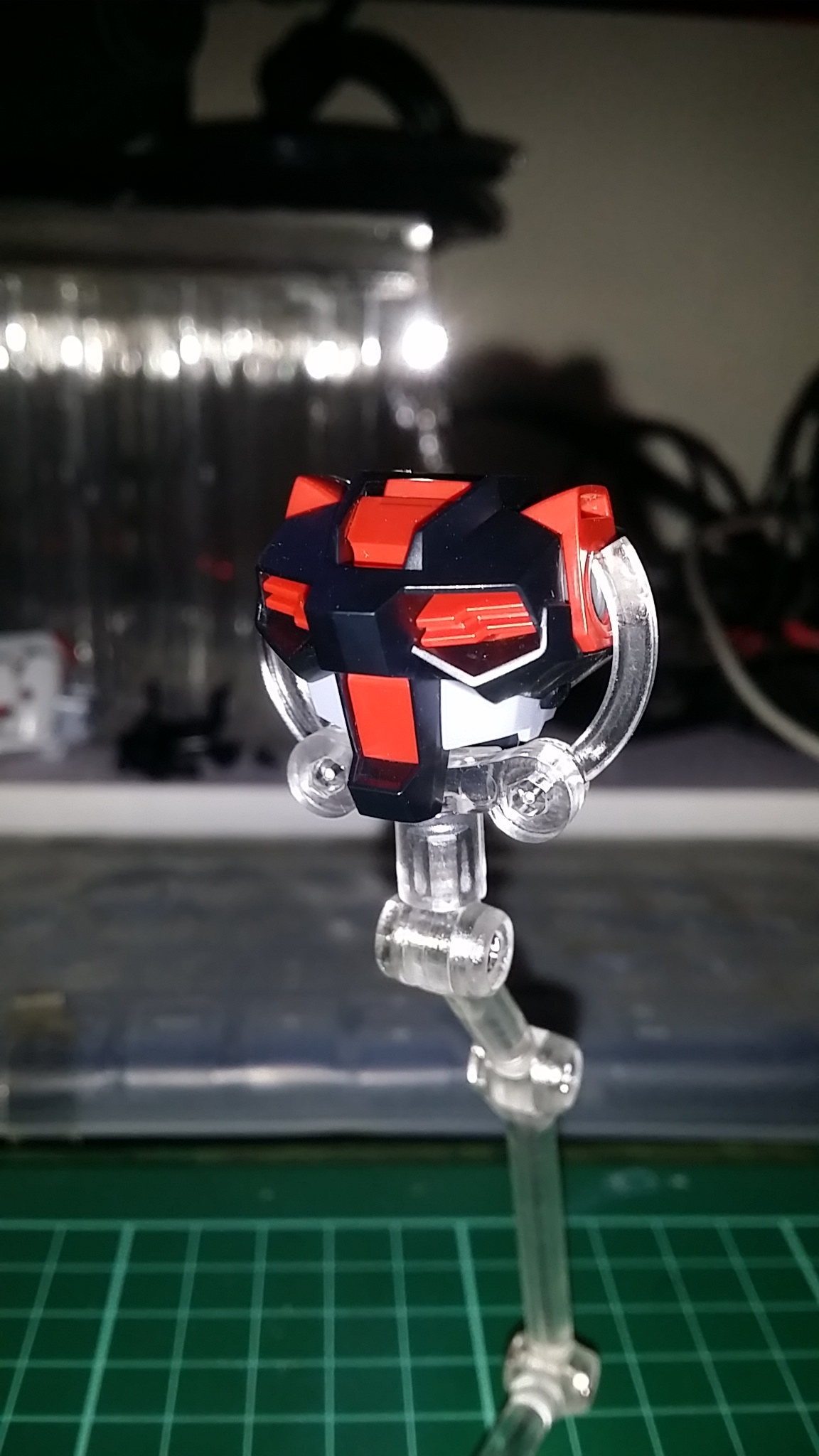 忘了说了,组完背包后才发现头部两侧忘了贴黑色的贴纸了,所以上一层和这层的头部会有些区别,这里是补上后的照片,应该不会有问题吧……