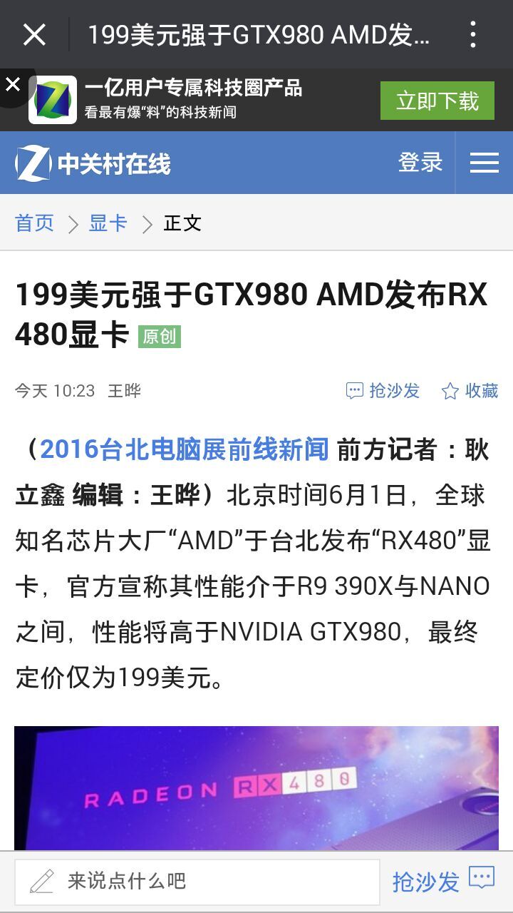 06.01【讨论】1300元显卡吊打980?农企AMD发布480能否翻身?