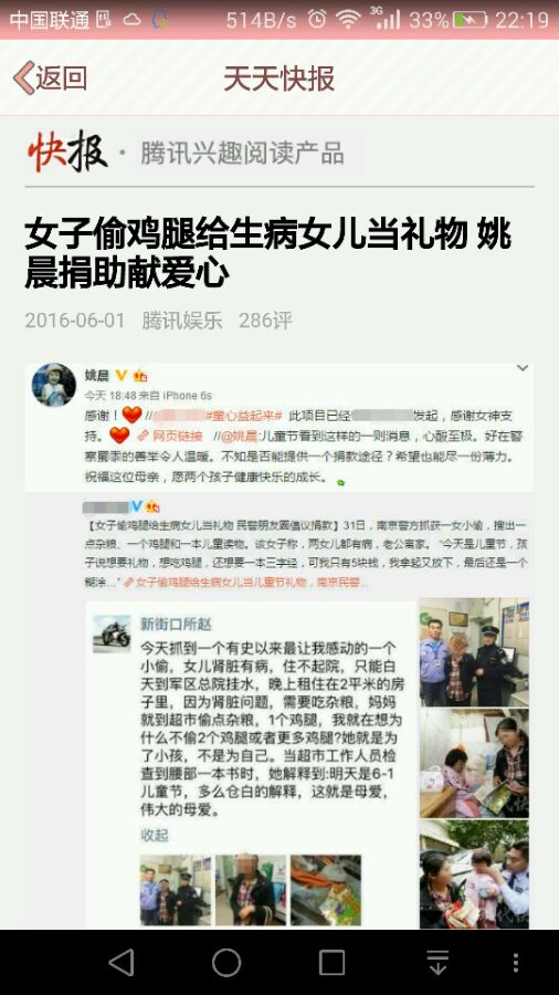 她只偷了一个鸡腿和一本三字经而已,当时警察问他为什么只偷一个鸡腿,他说的话让我泪奔,他说他偷这个鸡腿只是为了她孩子而已,至于那本三字经是孩子一直想要的礼物。我估计这件事情上那就店主也应该绝对不好意思去为难那样的母亲。