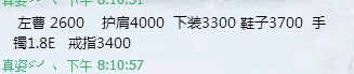 装备价格。每个区略有不同。衣服没有能买到的。就不举例了。这些都是在能买的前提。除了腰带。狗链。。算上附魔。价格在5亿左右吧。这个坑。略深。