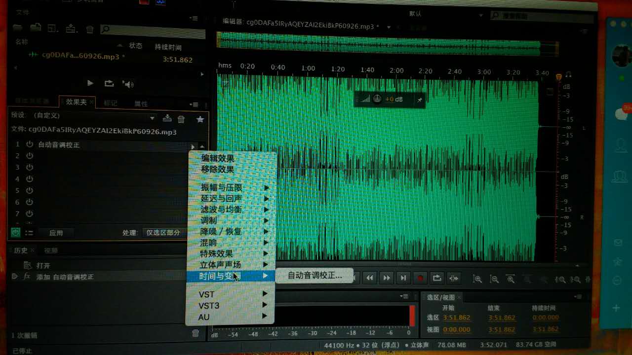 装了一个破解版adobe audition CS6 ,但是选择 时间与变调 项里面只有一个自动音效校正,请问大神么在哪里有升降调啊??