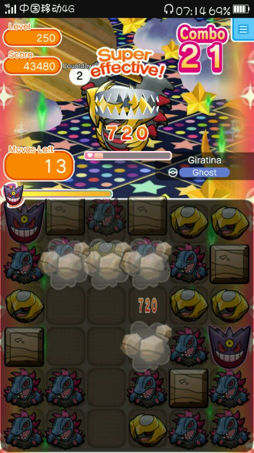 M耿鬼M裂空座都可以,用M耿鬼的话就不会发生图4的情况(冰在上面的M裂空座,我费了一步将最左上的鬼龙换成裂空座,再连裂空座才把冰块解决…)