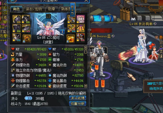 上回看时记得是3W面板左右,这次又提升不少。 这个援助力手镯真的太好。对于荒古武器来说 除了30黄字手镯,已经没有比这个更强了。