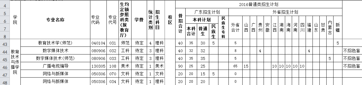 目前,我院开设有教育技术学(师范)、广播电视编导、数字媒体技术(含师范和非师范)、网络与新媒体四个本科专业: