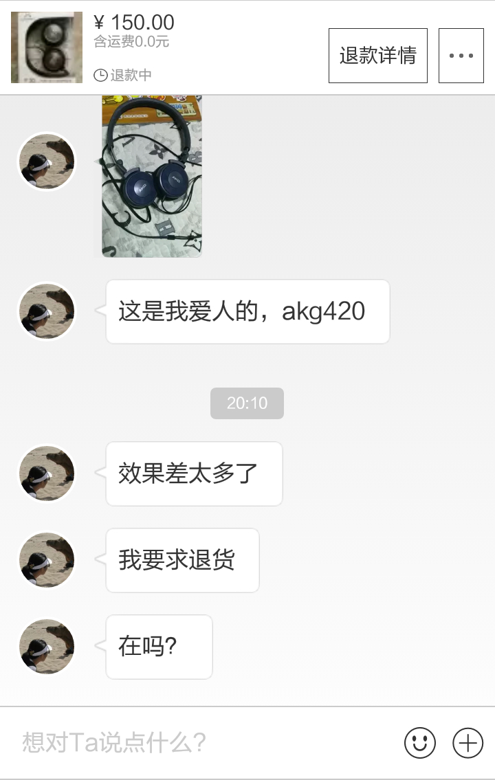 今天收到退货,哥插手机听到耳机还能响,立即给他退款完成.........吧友要吸取我的教训,发货前跟买家沟通,觉察对方是木耳,及时终止交易,免得麻烦。