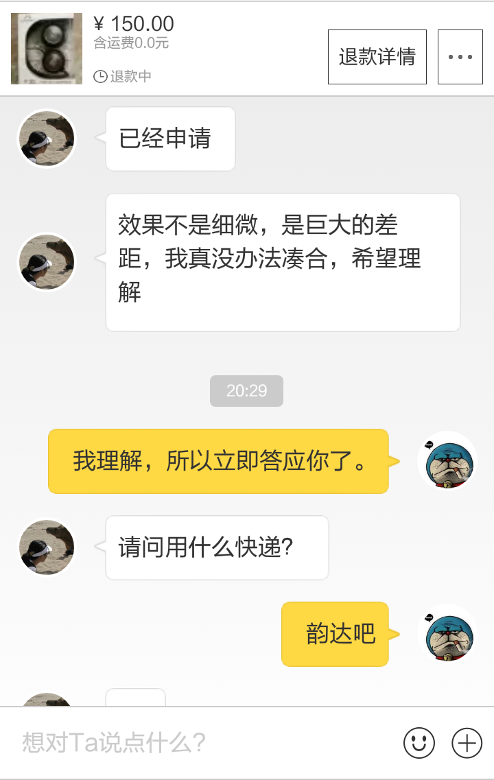 吧友要吸取我的教训,发货前跟买家沟通,觉察对方是木耳,及时终止交易,免得麻烦。