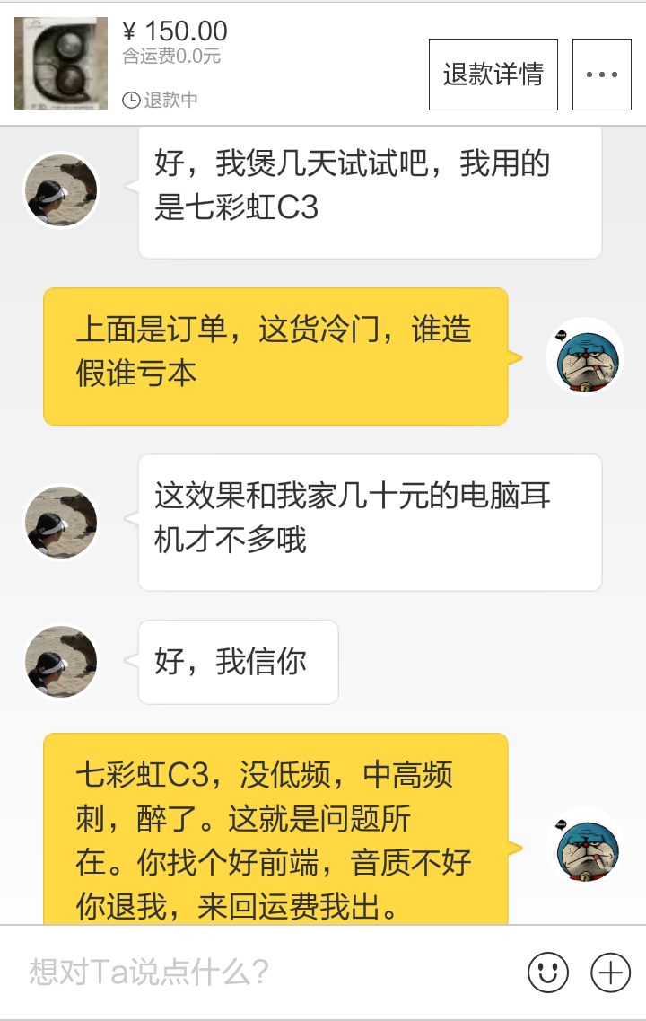 说我的是假货,我擦!!这,这么冷门的耳机没假货吧!!!然后我问了一下他用什么前端,回答七彩虹C3,醉了!!!