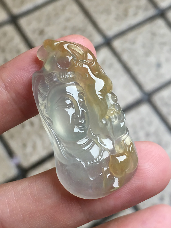 冰种黄翡观音头,百鸟朝凤 种水通透,水分足,雕工一流,尺寸:37/19/6,价秒:7400 【05306169】