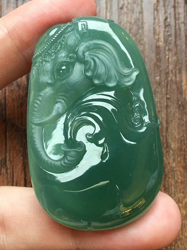 高质量大象“吉祥”牌子,老坑种看透光就知这个种水过好,底子过细腻水润,雕工一流 尺寸:49.6/30.7/7,价秒:19800 【053014185】