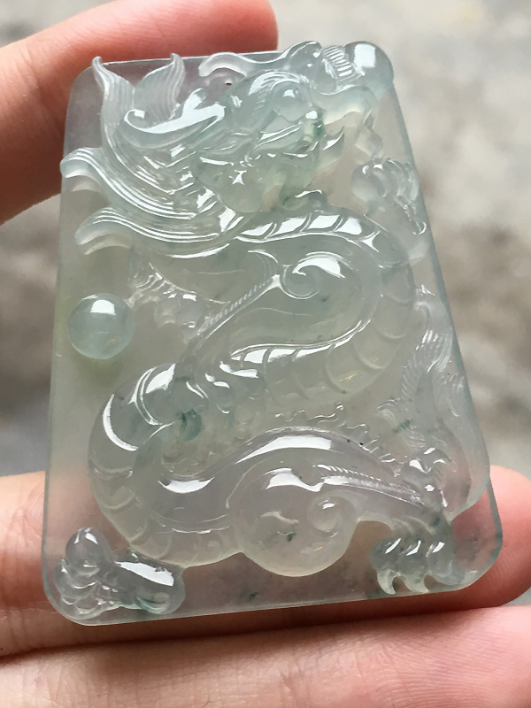 冰种龙牌 雕工立体 种水通透,大件 尺寸:50/38/6 ,价秒:7680【05303472】