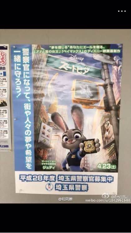 日本上映前,琦玉县招募警察使用朱迪