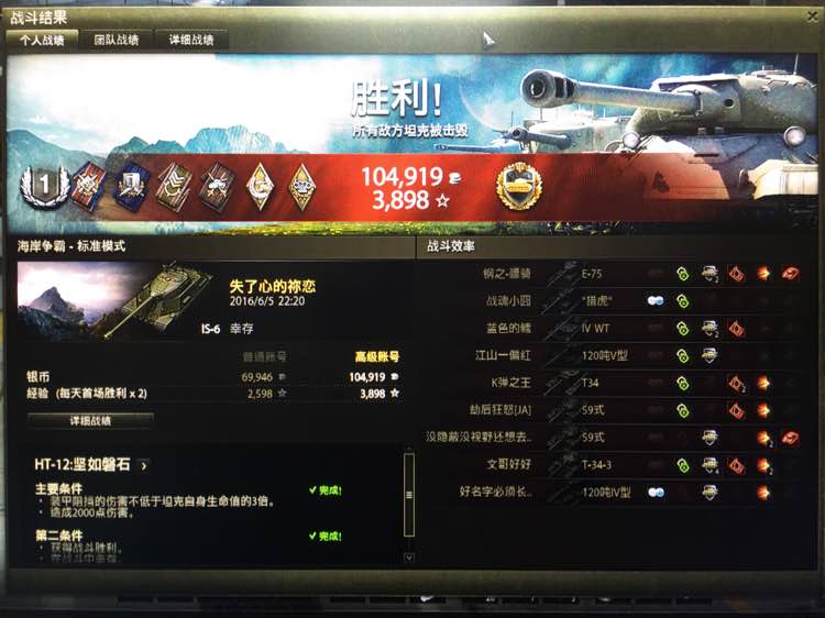 谢谢各位的关注,最后是IS-7过的。战绩图在192楼。