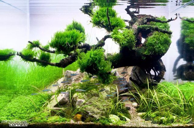 在下有个缸长120高70宽50,现在里面就有个杜鹃根绑了MOSS,请问放什么石头好看?